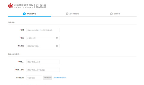 进入云保函网站(www.yunbaohan.com),点击右上角注册按钮